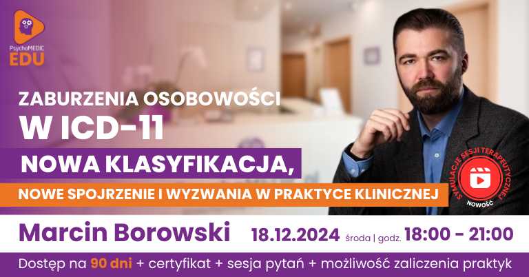 Specjalisto, klasyfikacja ICD-11 zbliża się do polskich gabinetów wielkimi krokami! Zapisz się na szkolenie i naucz się nowego modelu diagnozowania jednych z najczęstszych trudności - zaburzeń osobowości.